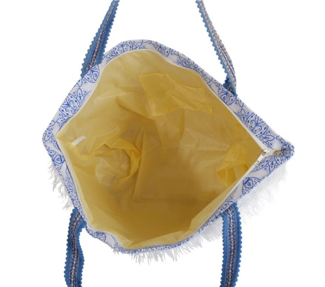 Deze stijlvol en functioneel ontworpen beachbag is geschiktn voor al uw avonturen aan zee. Deze ruime tas heeft een afmeting van 58x36x18cm en is perfect voor het meenemen van al uw strandbenodigdheden, van handdoeken en zonnebrandcrème tot snacks en een goed boek. De tas is uitgevoerd in een levendige blauwe tint en voorzien van charmante kwastjes die een speels tintje geven aan je strandkleding. Het duurzame materiaal zorgt ervoor dat hij bestand is tegen de elementen, terwijl de stevige handvatten zorgen voor comfort en gemak tijdens het dragen. De tas is gevoerd en sluit met een rits.Of je nu aan het strand ligt of geniet van een picknick in het park, de strandtas is je favoriete metgezel voor moeiteloze stijl en functionaliteit. Geef uw zomerse uitstapjes een boost met dit must-have accessoire!