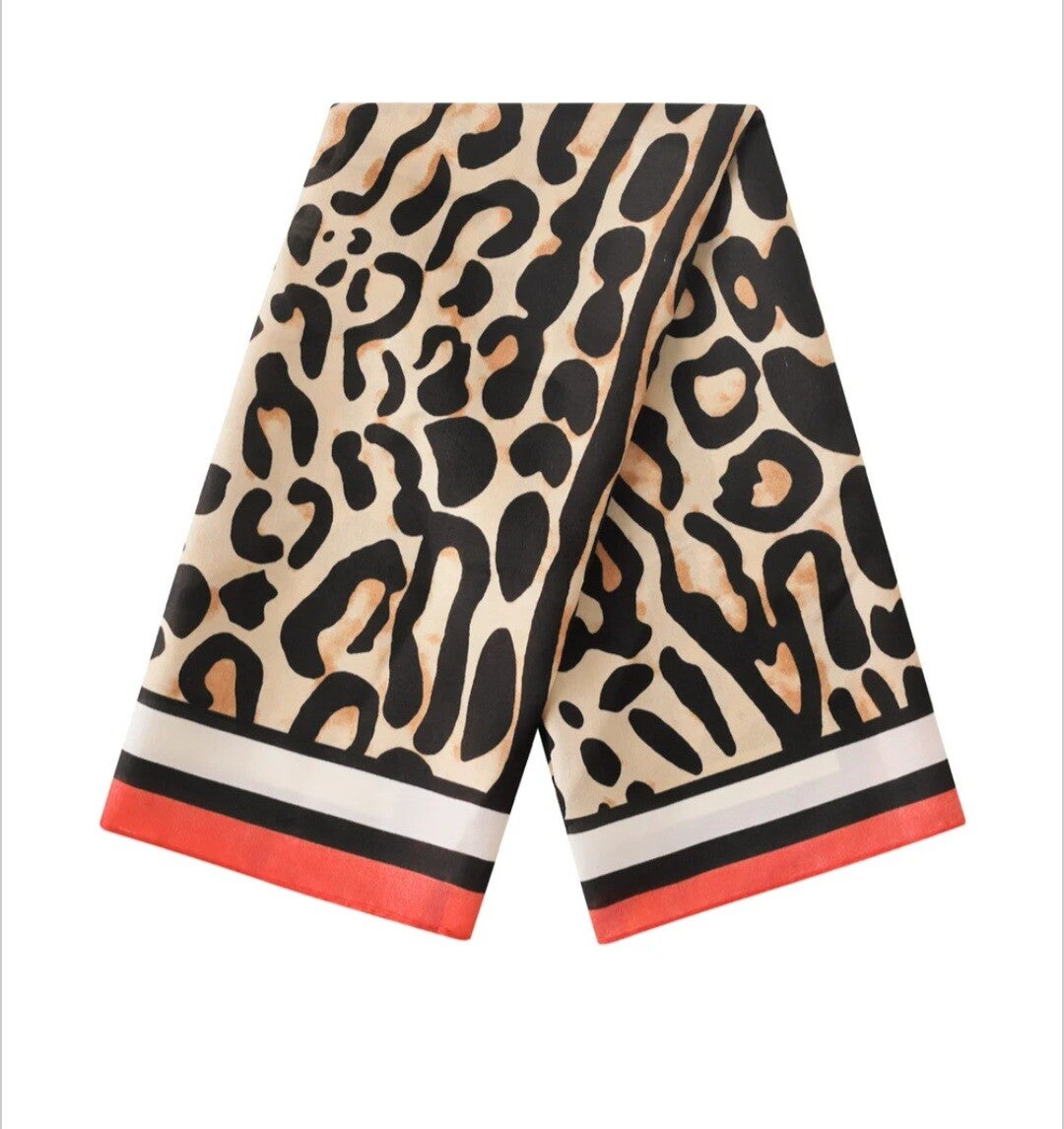Helemaal hip, dit korte sjaaltje met classy luipaard print. Draag hem om je nek, je tas, aan je broek of in je haar!