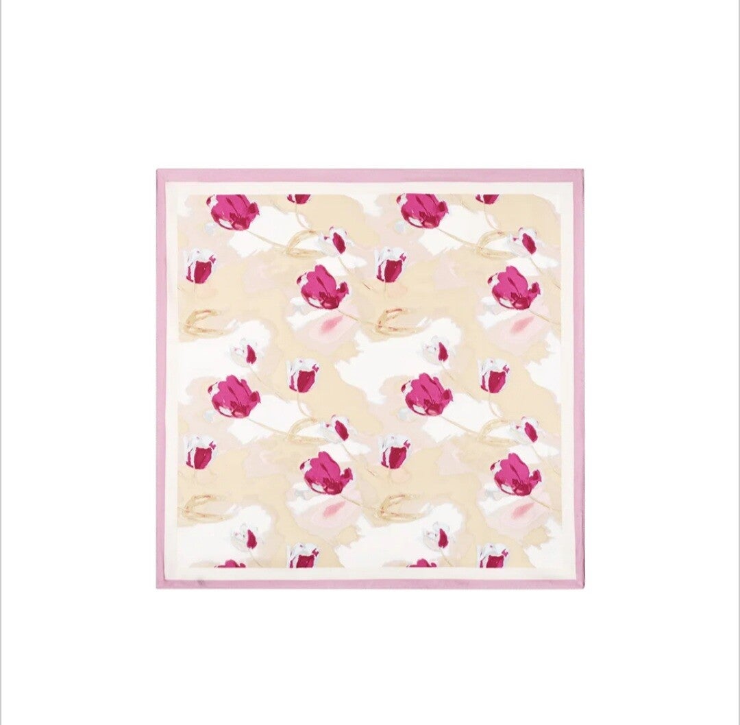 Helemaal hip, dit korte sjaaltje met roze en beige kleuren. Draag hem om je nek, je tas, aan je broek of in je haar!